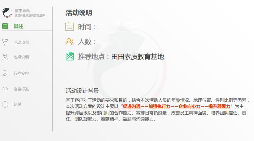 1、團建通項目經(jīng)理將竭力解決您在培訓前、培訓中遇到的問題,保證您的快樂培訓;