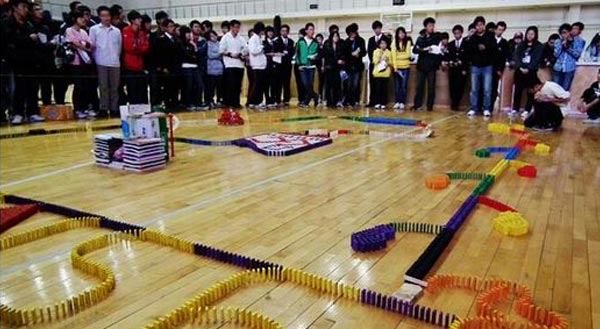 多米諾是項集動手、動腦于一體的運動。一幅圖案由幾百、幾千甚至上萬張骨牌組成。它不僅考驗參與者的體力、耐力和意志力,而且還培養(yǎng)參與者的智力、想象力和創(chuàng)造力。漫長的發(fā)展過程,賦予它獨特的教育功能。碼牌時,骨牌會因意外一次次倒下,參與者時刻面臨和經(jīng)受著失敗的打擊。遇到挫折不氣餒,不退縮,要樹立信心,鼓起勇氣,重新再來。它培養(yǎng)人的創(chuàng)造能力、增強自信心、品位高雅的娛樂活動,而且不受時間、地點的限制,對開發(fā)參與者的智力、創(chuàng)造力和想象力,對訓(xùn)練參與者動手能力、思維能力都非常有好處,更重要的是,它能夠培養(yǎng)參與者的意志,最大限度地發(fā)揚團隊精神。